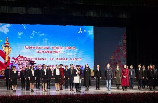 在“岗村联建”代表万婷引领下,利川市直单位50名女同志进行集体承诺:投身到“精准扶贫 岗村联建”行动中,发挥女性特色优势,为全市妇女儿童做出应有贡献!