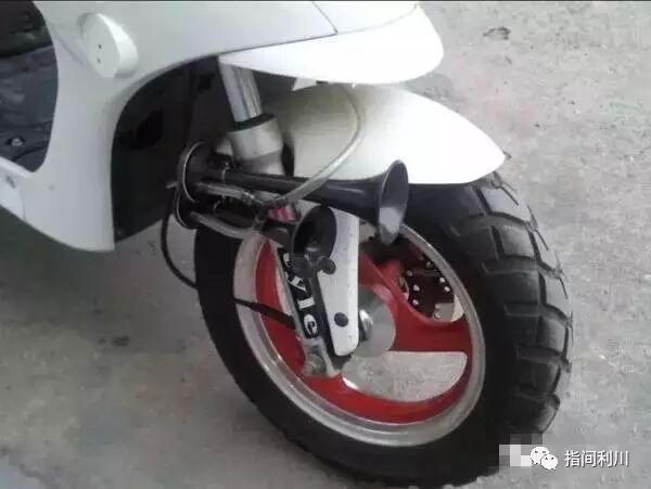 更换摩托车的标准喇叭,大幅增大鸣笛分贝,并能模拟特殊的声音,如警笛、大货车汽笛等,类似下图: