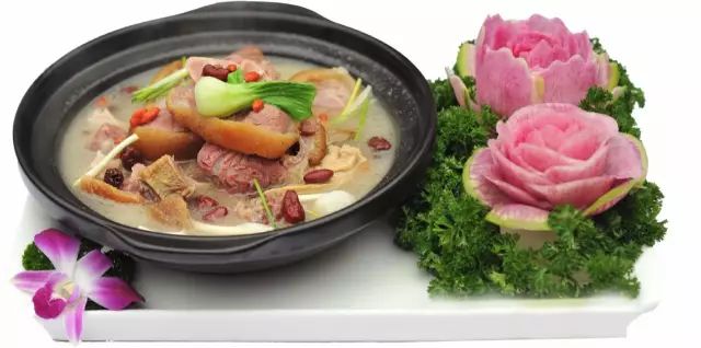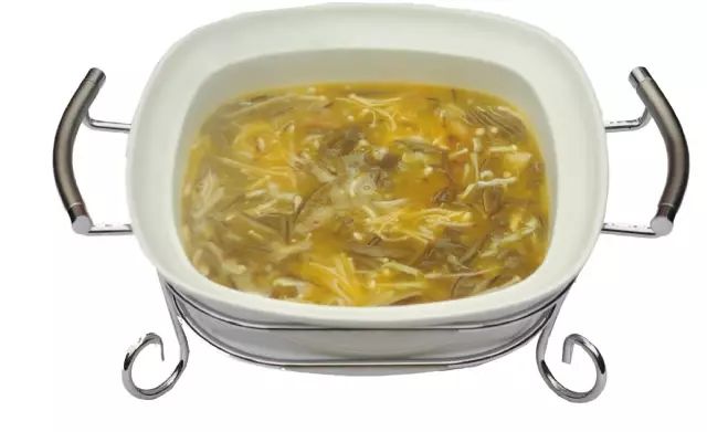 莼菜一品锅:主要采用莼菜、鸡丝、鱼丝、金针菇、鲜香菇、南瓜汁等原材料。