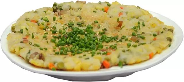 农家散散采用利川本地绿色蔬菜土豆、青豆、胡萝卜和土家特色食品腊肉、米面加工而成。精选上好腊肉、土豆、胡萝卜切成1厘米见方,加青豆、料酒、盐、鸡精、胡椒粉拌匀,再拌米面清蒸,待九成熟后再用平锅煎到二面黄。最后起锅装盘,撒上味料即成。农家散散入口香脆,色鲜味美,油而不腻,营养丰富,是土家族地区传承的优秀菜品之一。